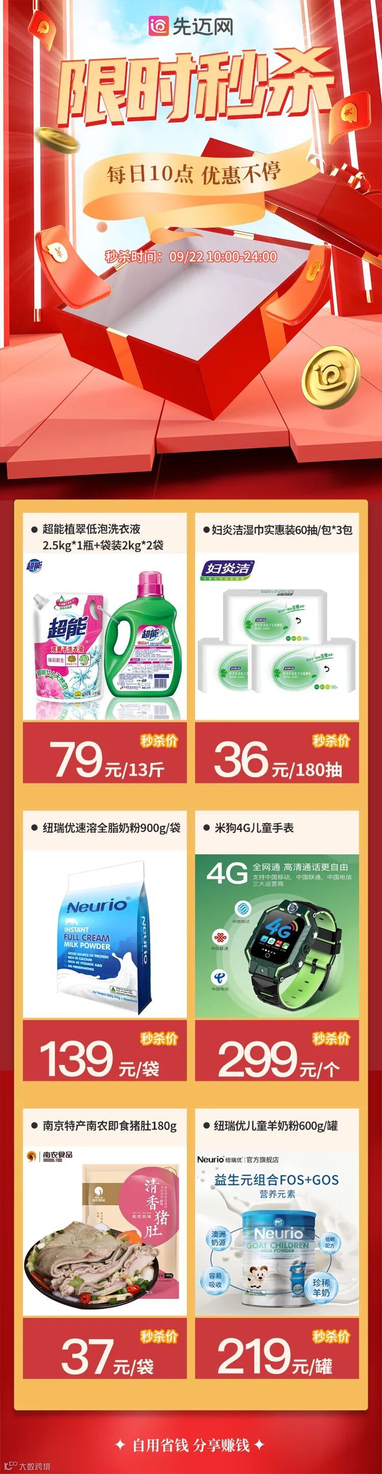 进入先迈网小程序秒杀专区即可抢购!