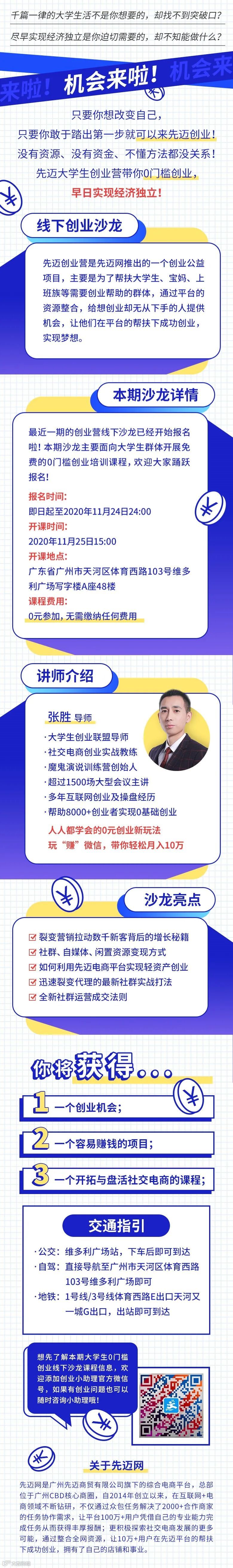 大学生0门槛创业-先迈创业营线下沙龙报名开始啦
