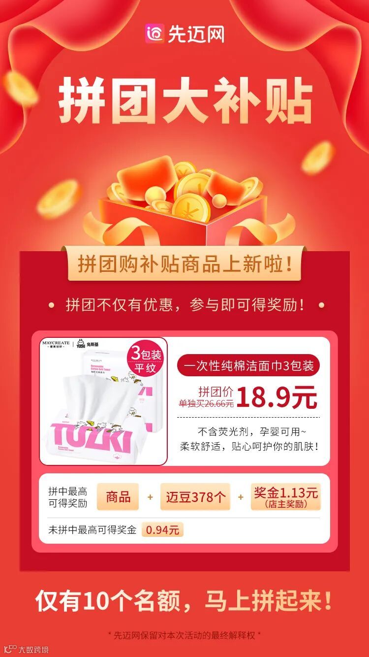 这款有拼团补贴价的纯棉洁面巾,一包50抽,总共有3包,拼团价才18.9元!