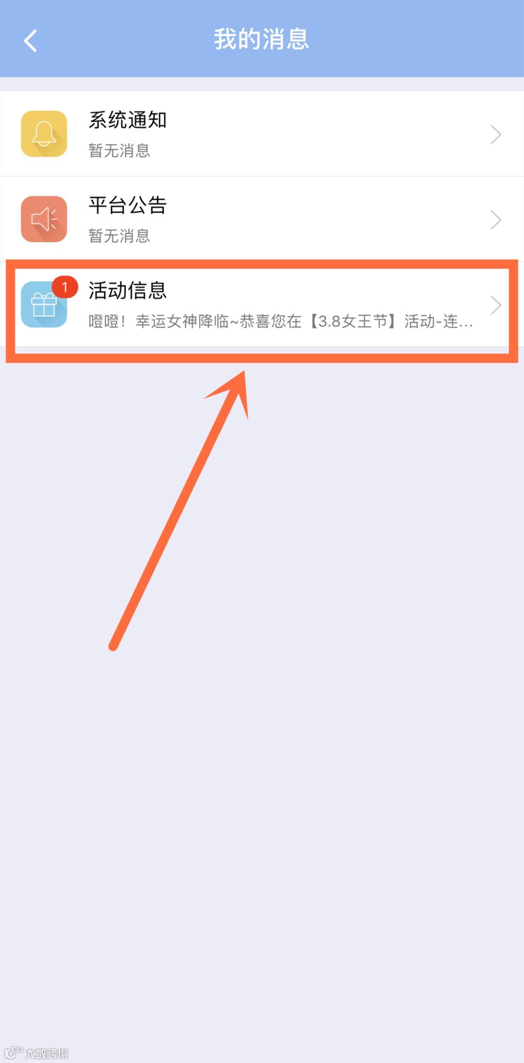 2、点击“我的消息”→“活动信息”