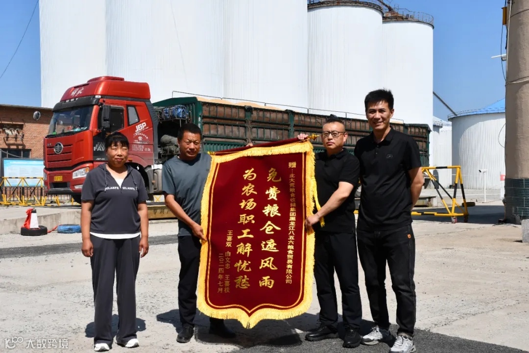 锦旗上,“免费粮仓遮风雨、为农场职工解忧愁”15个金灿灿的大字在阳光下熠熠生辉。八五六粮贸公司表示,“这面锦旗是一份荣誉,也是一份责任。作为仓储企业,公司有责任,也有义务为受灾种植户‘撑伞’,不仅免费存放,更能安全存储”。汛期期间,八五六粮食贸易有限公司已帮助种植户解决粮食安全存放390余吨,并积极为种植户“牵线搭桥”,为粮食寻找更好的销售渠道。