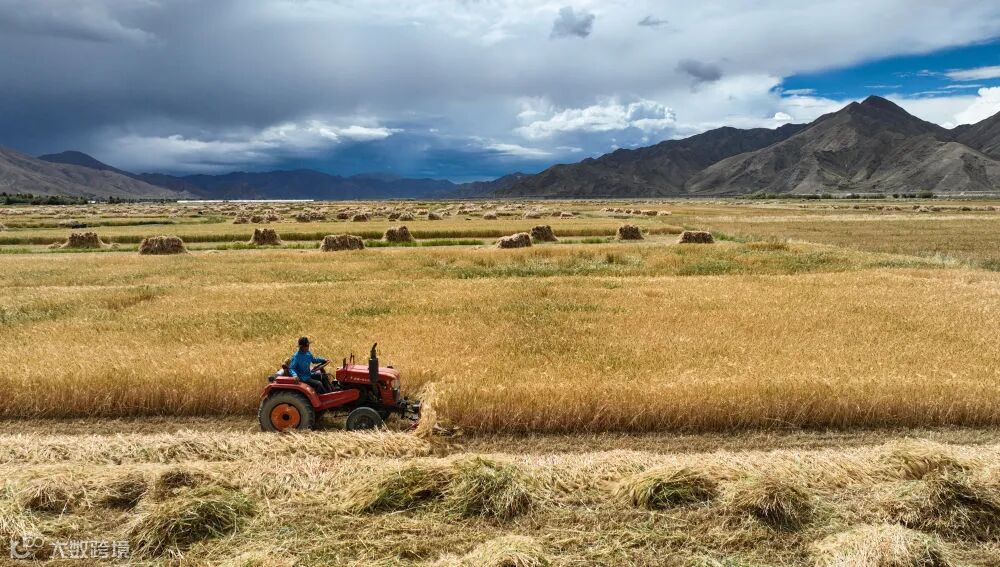9月10日,在西藏日喀则市白朗县巴扎乡拍摄的秋收场景(无人机照片)。新华社记者晋美多吉 摄