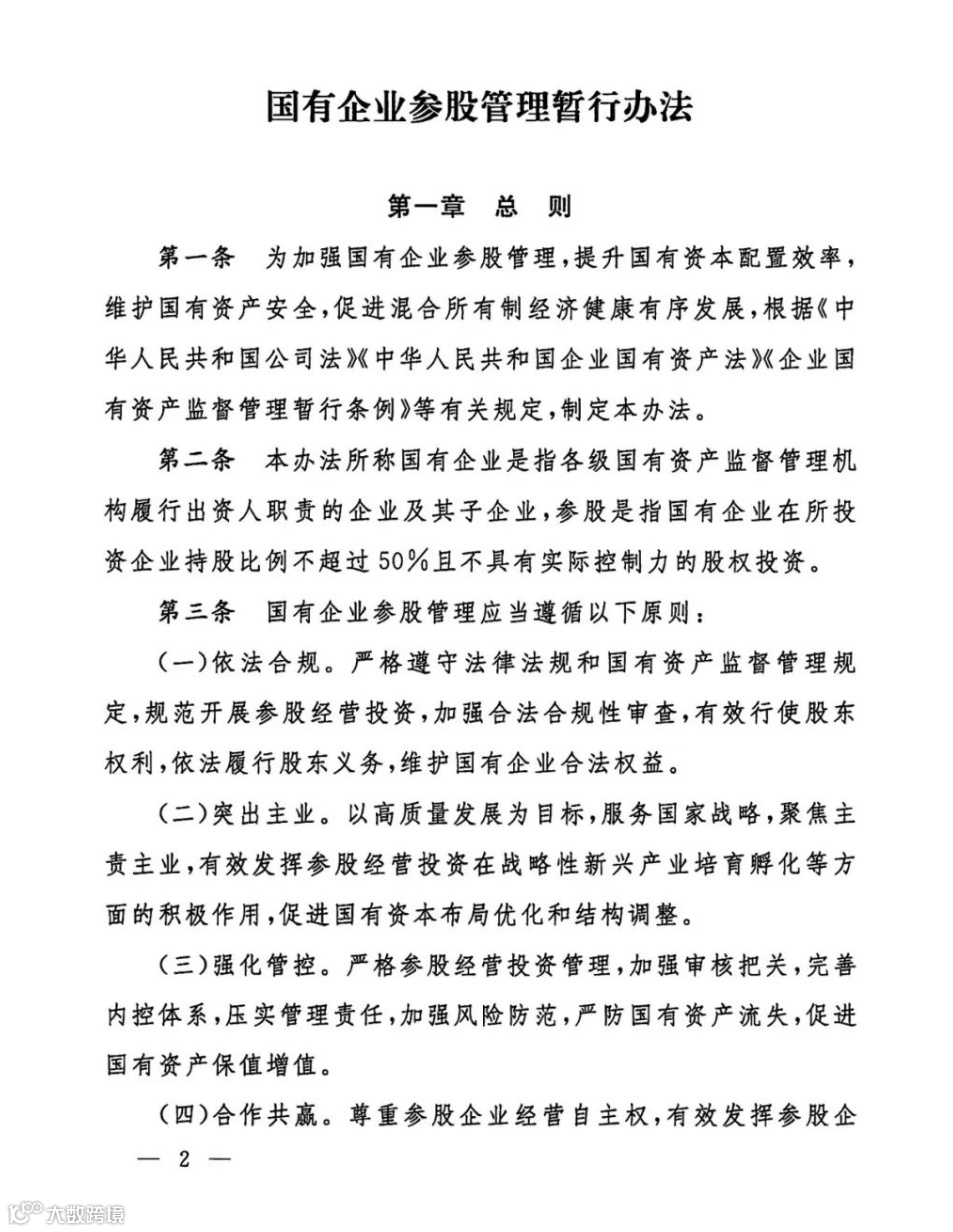 (以下简称《暂行办法》),这显示国有企业参股管理这一事项向前一步正式进入国资监管的重点关注事项,体现了国资监管进一步强化的新动向。
