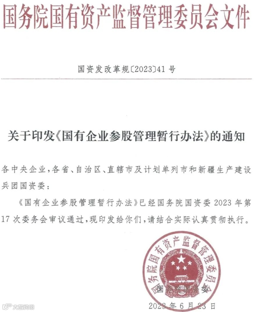 重磅发布!〔2023〕41号国有企业参股管理办法
