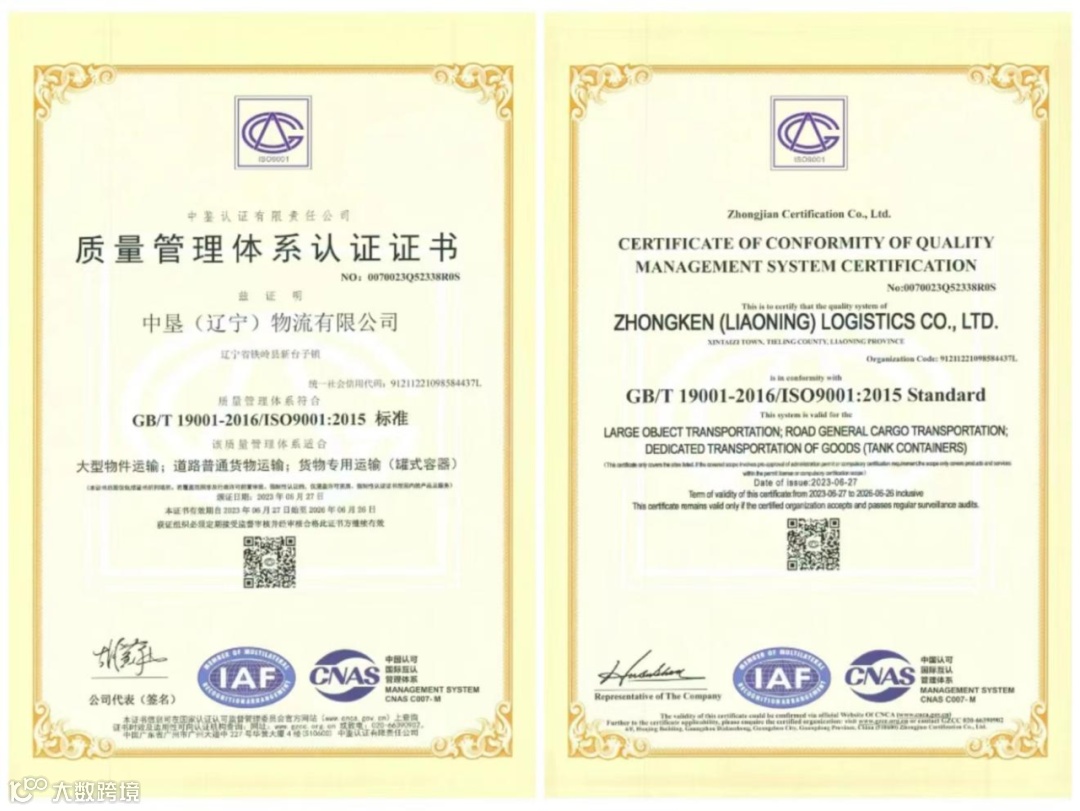 北大荒物流集团中垦物流(辽宁)公司成功通过质量管理体系认定 为大物流战略落地落实奠定坚实基础