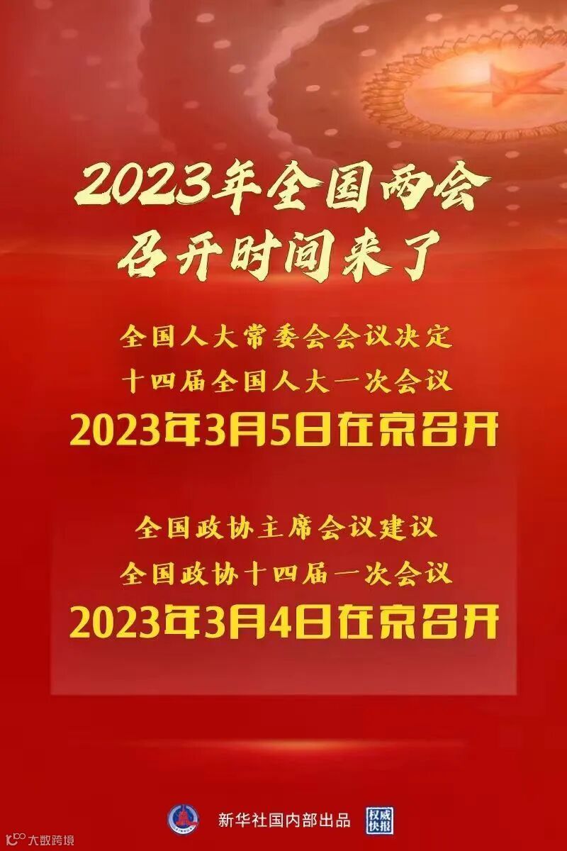 2023年全国两会召开时间来了!