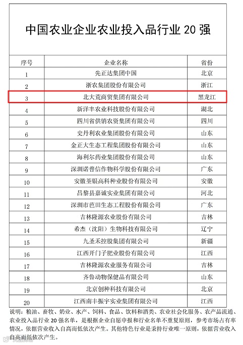 12月20日,农民日报社发布2024中国农业企业500强。北大荒商贸(收储)集团成功荣膺2024中国农业企业500强。其中,商贸集团以3765937.73万元的营业收入位列第21名,粮食收储集团以487567.71万元的营业收入位列第163名,同时商贸集团位列中国农业企业农业投入品行业20强第3名。