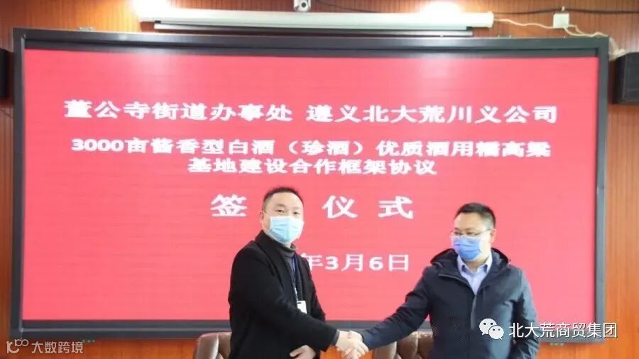 3月6日,遵义北大荒川义公司与董公寺街道办事处3000亩酱香型白酒(珍酒)优质酒用糯高粱基地建设合作框架协议签约仪式在遵义董公寺街道举行,两方主要负责同志出席,签约仪式由董公寺街道党工委副书记冯雪华主持。