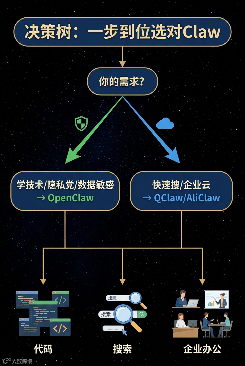 朋友圈 Claw 刷屏,招聘要“三年经验”,你懵了吧?别慌!这篇扒开 OpenClaw 和一堆大厂 Claw 的真面目,对比表+决策树+学习路径,手把手教你选对。技术党、企业党、普通人都适用。读完不后悔!
