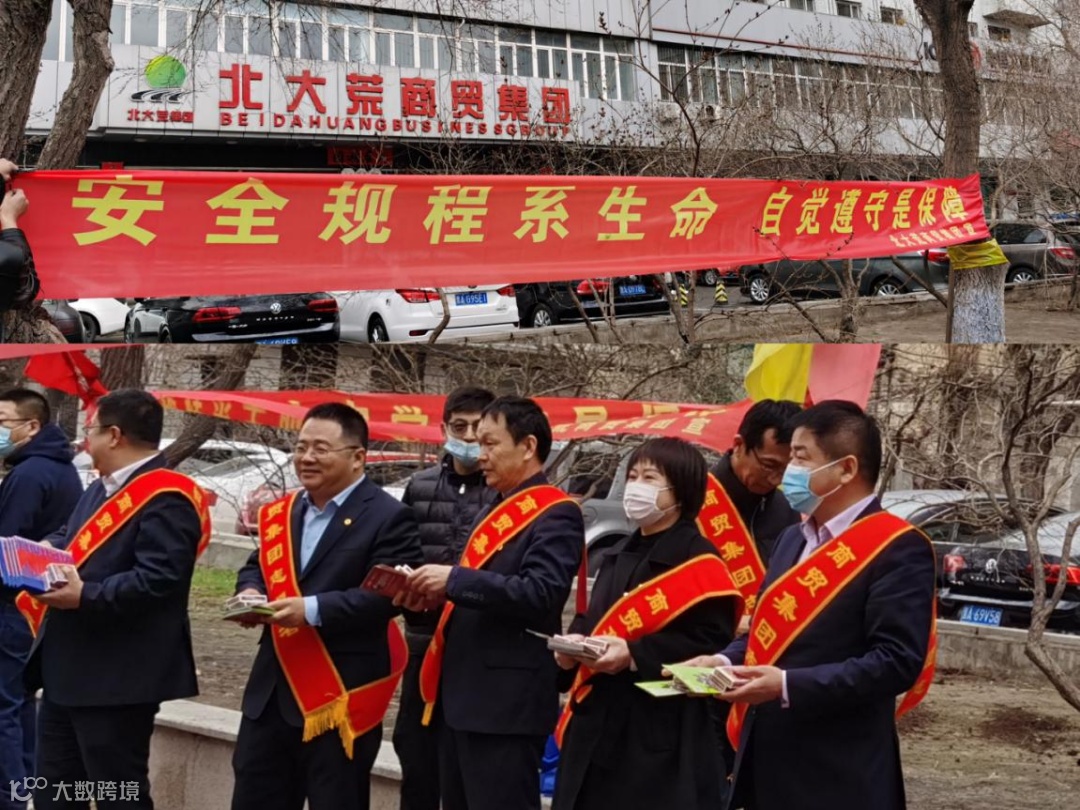 ,北大荒商贸集团部分领导班子成员走上街头,以企业安全员的身份发放安全宣传资料,为路人讲解国家安全法规知识,以自身行动参与“安全规程系生命,自觉遵守是保障”志愿