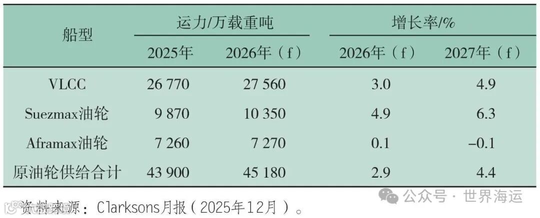 2025年全球原油持续供过于求,带动岸上及浮式储油活动激增,有效支撑原油轮供需平衡。德路里(Drewry)数据显示,全球原油吨海里需求同比增长3.6%,海运贸易量增长3.1%,而VLCC船队载重吨仅微增0.01%。