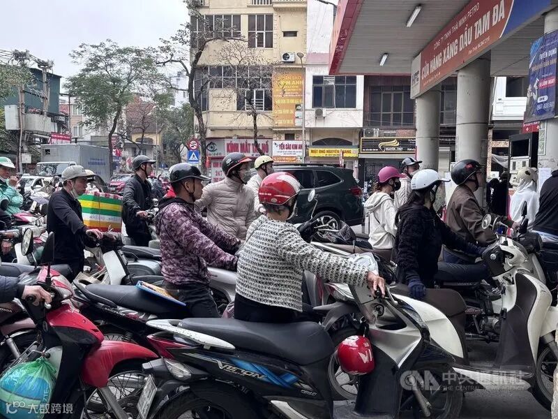 (因中东战争,越南加油站加油已排成长队)