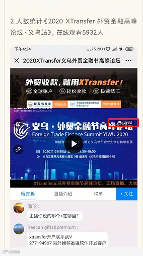 - B.《2020 XTransfer外贸金融高峰论坛·义乌站》:在线观看5932人次;