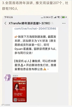 - C.全国首场跨年演讲:推文阅读207次,社群新增190人。
