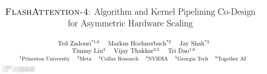 全新优化算法FlashAttention-4应运而生,专为Blackwell架构设计,将注意力计算利用率从行业普遍的20%–30%提升至71%。