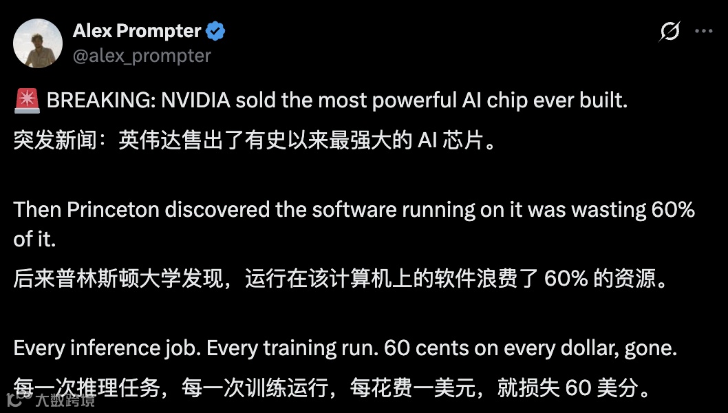 普林斯顿大学联合Meta、Together AI及英伟达等机构研究发现:由于软硬件协同不足,B200在注意力计算中平均浪费约60%的理论算力。