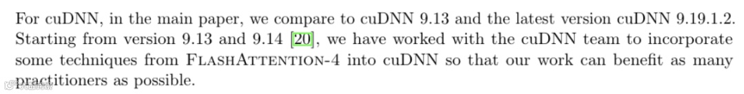 论文指出,cuDNN 9.13起已反向集成FlashAttention-4多项核心技术。