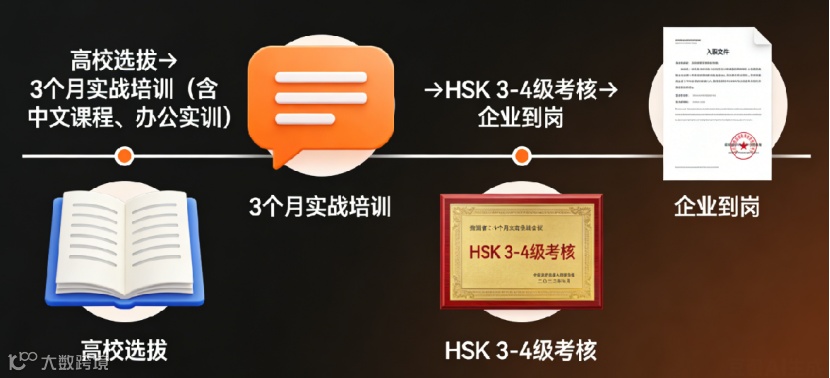 联合印尼优质高校,精选应届毕业生开展为期3个月实战培训,内容覆盖职场汉语、中文文件处理、跨文化沟通、基础商务礼仪等办公刚需技能,结业即可上岗,企业免培训。