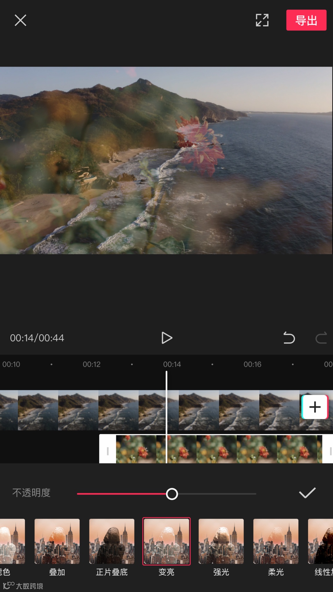 支持多轨道叠加,自由缩放、拖动与动画设置;混合模式可实现双重曝光、动态拼贴等专业特效,拓展分屏与互动类视频创作空间。