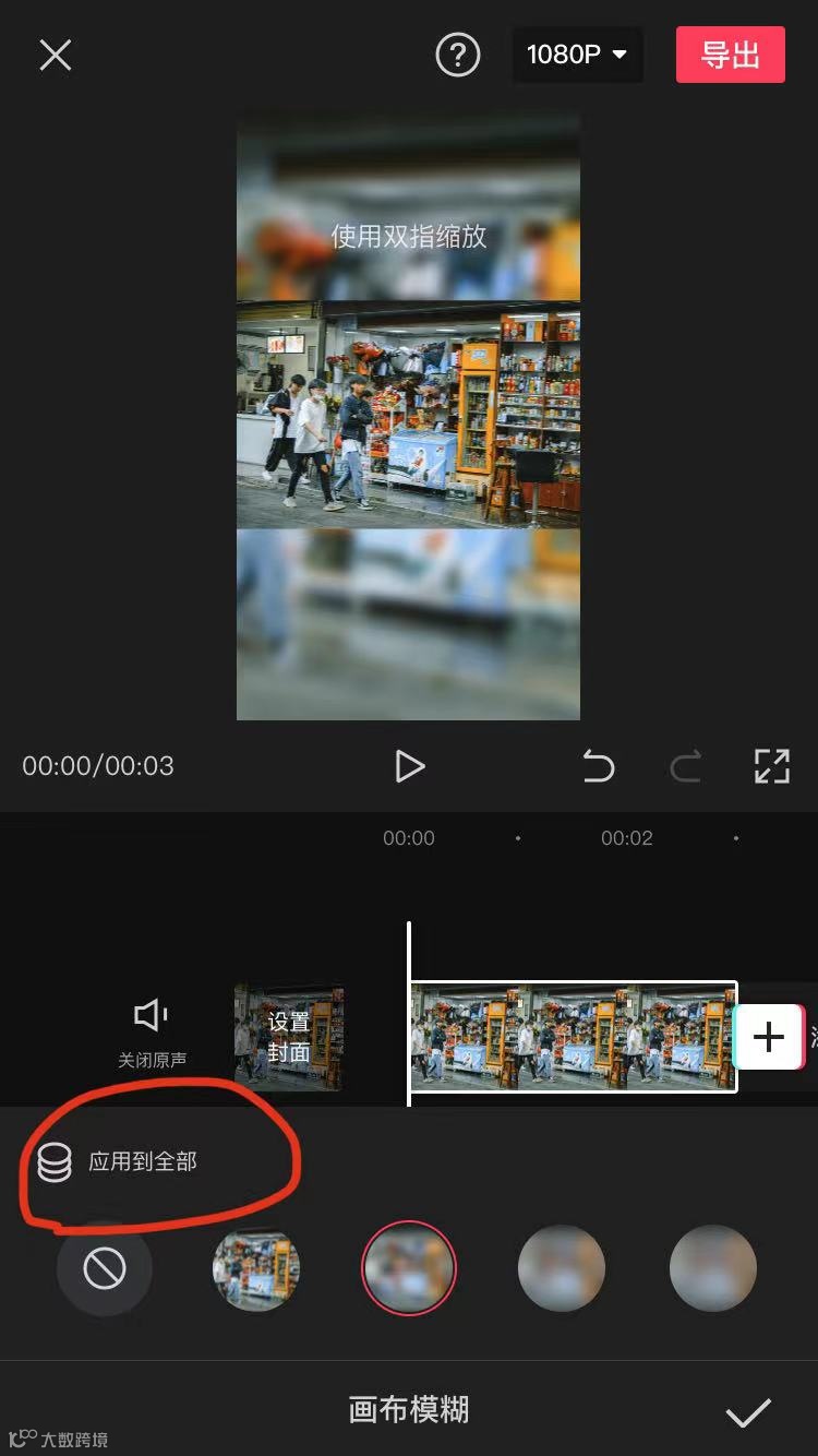 修改背景后,点击“应用到全部”,即可一键同步至所有相关片段,节省重复操作时间。