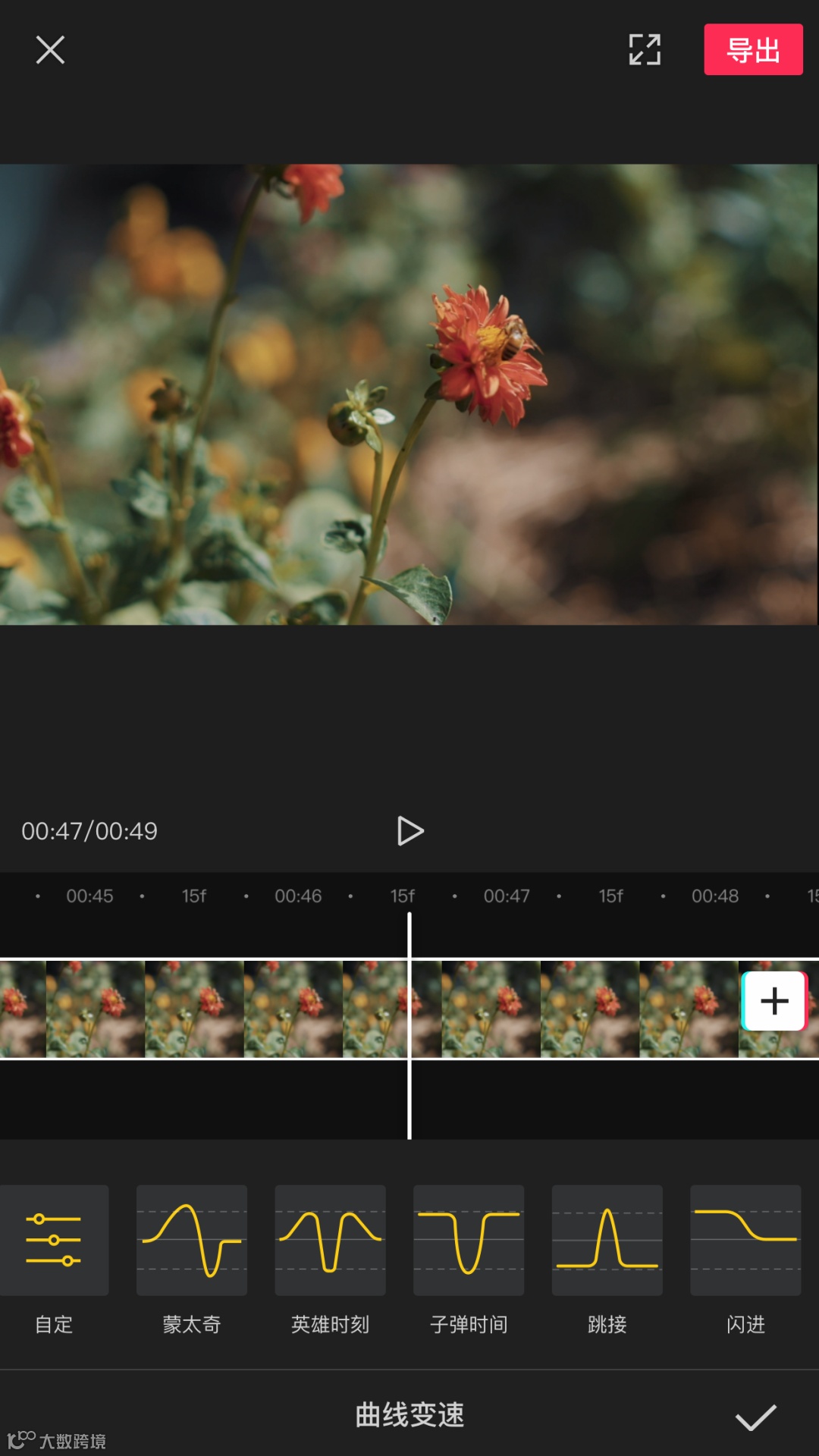 区别于直线型常规变速(0.1x–100x),曲线变速提供蒙太奇、英雄时刻、子弹时间等预设效果,并支持自定义速度曲线,实现细腻节奏控制与情绪强化。