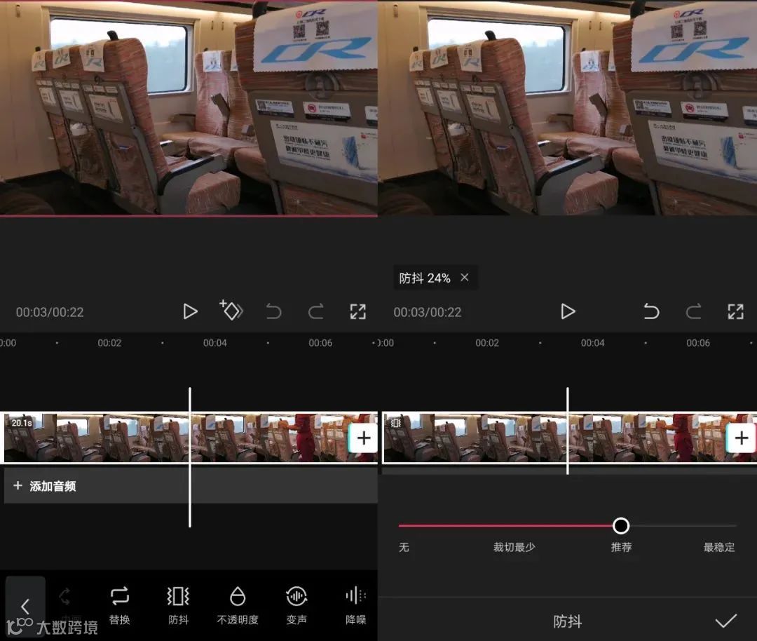 通过AI算法实现视频后期防抖(以小幅裁切为代价)及音频智能降噪,显著提升手持拍摄与外录音质表现,让画面更稳、声音更净。