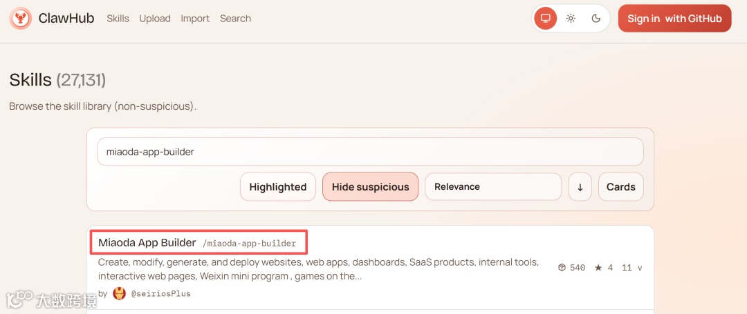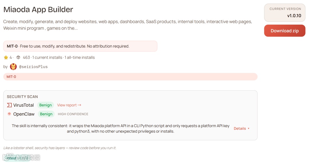 3月13日,百度秒哒补上了这块最大拼图——Miaoda App Builder正式上架ClawHub,成为全球首个将完整应用开发能力封装为Skill的工具包。