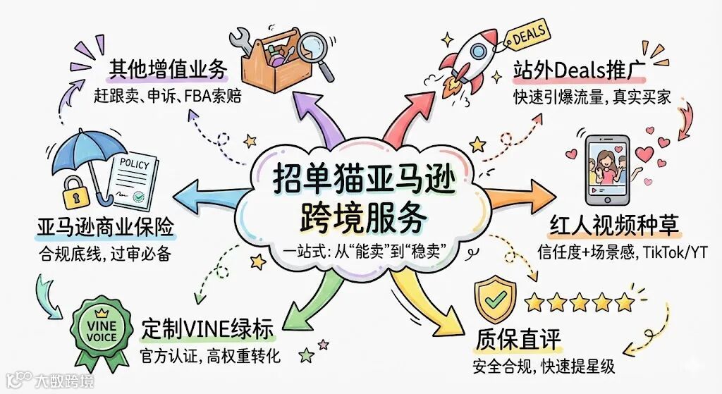 招单猫跨境用六大服务,帮你一站式搞定: