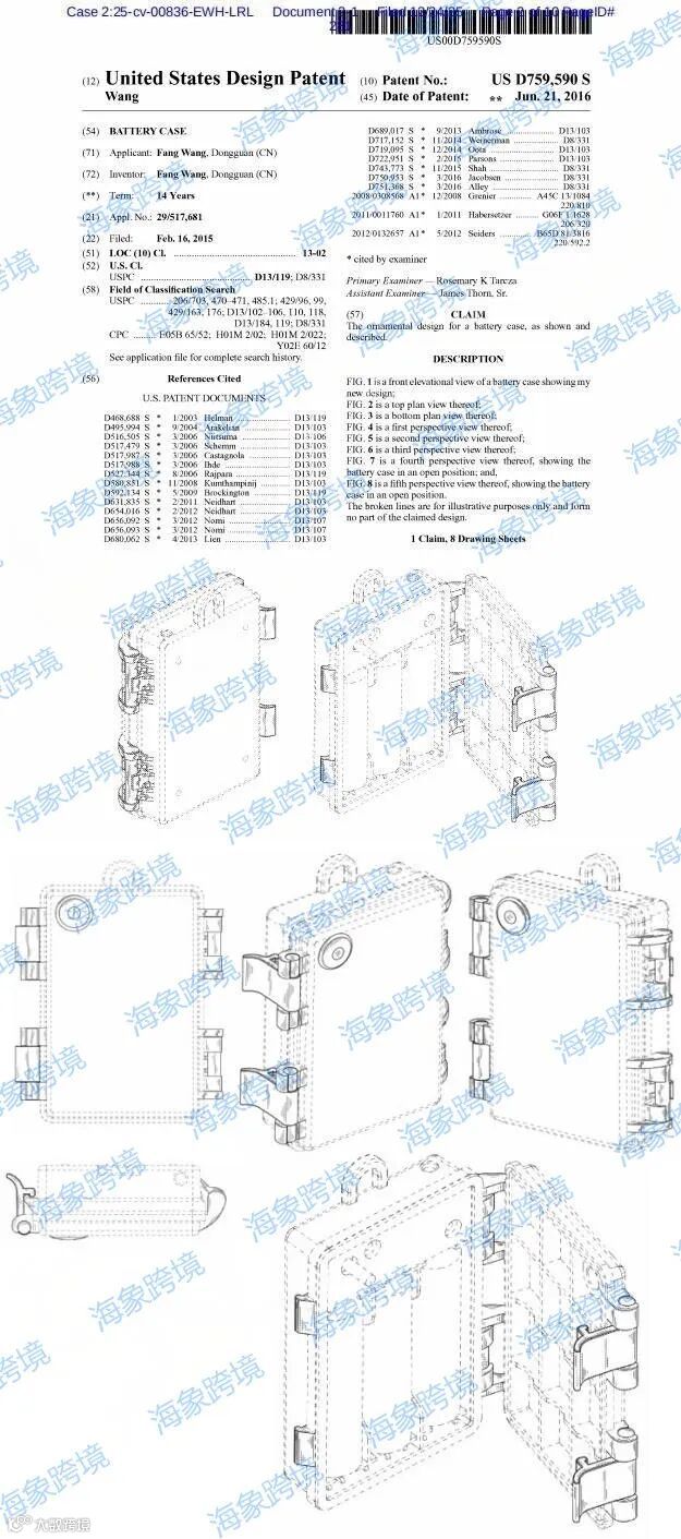 电池盒外观专利维权案件(案件号:25-cv-836)