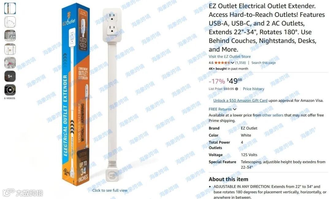 - 原告品牌:EZ Outlet 插座延长器