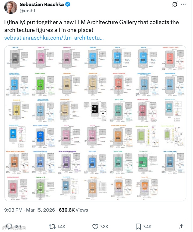 人工智能快速发展,大语言模型(LLM)持续迭代升级。为帮助开发者快速掌握核心架构原理,AI专家Sebastian Raschka推出LLM Architecture Gallery(大语言模型架构画廊),以高度可视化、交互式的方式系统梳理主流开放权重模型的技术演进路径,引发全球技术社区广泛关注。