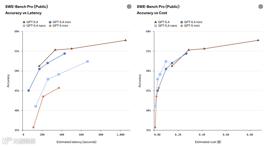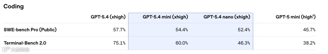 - GPT-5.4 nano亦达52.4%,反超上一代GPT-5 mini。