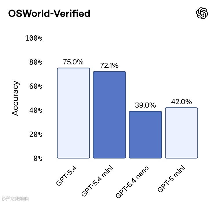 - GPT-5.4 mini达72.1%,距GPT-5.4(75.0%)仅差2.9个百分点;