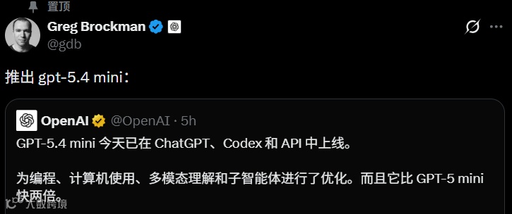 【新智元导读】OpenAI正式发布GPT-5.4 mini和GPT-5.4 nano,两款轻量级模型在编码、推理、工具调用与计算机使用等关键任务中逼近满血版GPT-5.4,同时实现速度翻倍、成本大幅降低,为AI工程化落地提供高性价比新选择。