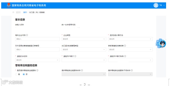 海关代码填写规则:有报关出口业务的出口退(免)税企业必填海关注册编码(10位)(否则会造成无电子信息无法申报退税)