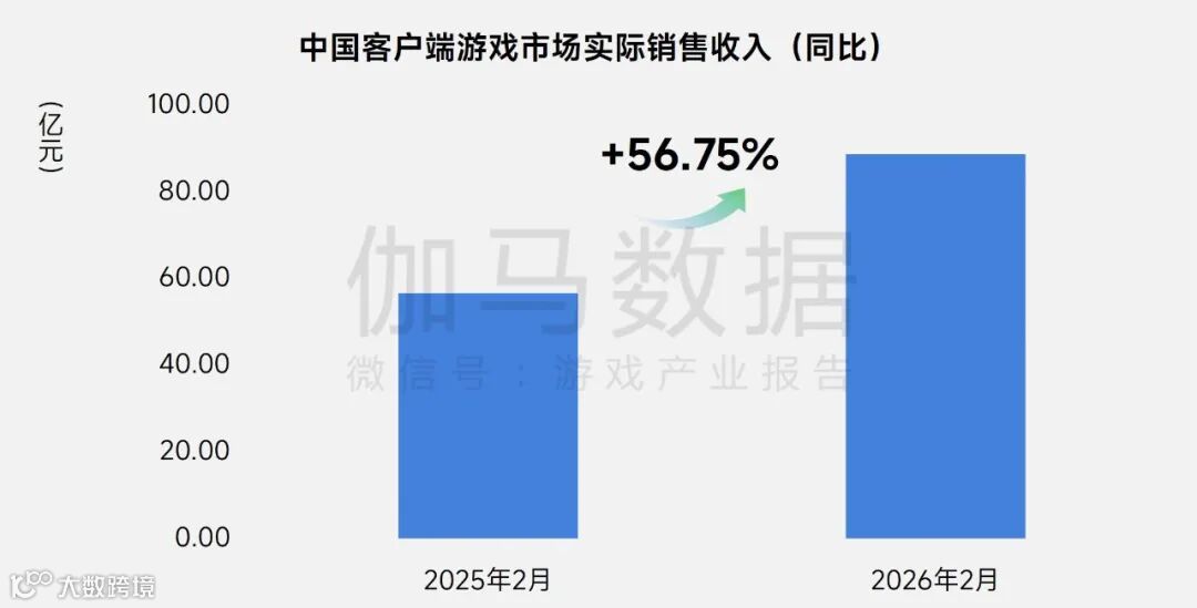 2026年2月,中国客户端游戏市场实际销售收入达88.7亿元,环比增长7.7%,同比增长56.75%。《三角洲行动》增量超7亿元。