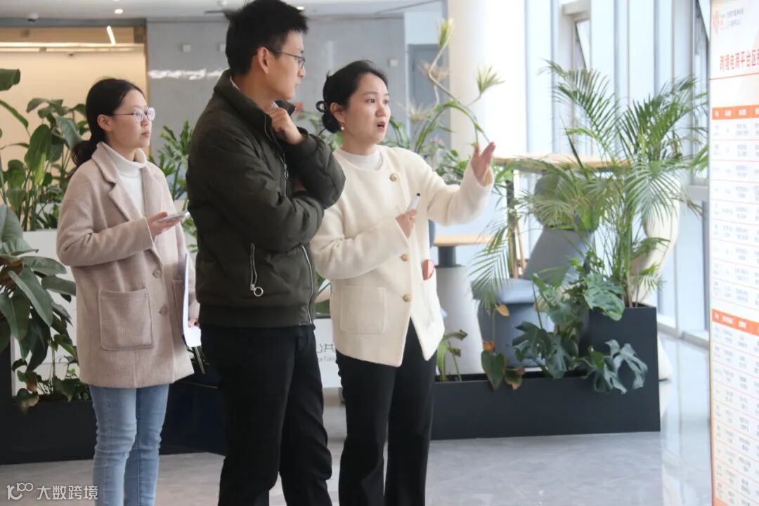 调研组走访了数字化信息走廊、涉外法律服务中心、选品中心等功能区块,现场查验平台运行成效,并围绕基础服务、金融财税、培育孵化、物流配套、品牌出海等业务布局进行系统梳理。