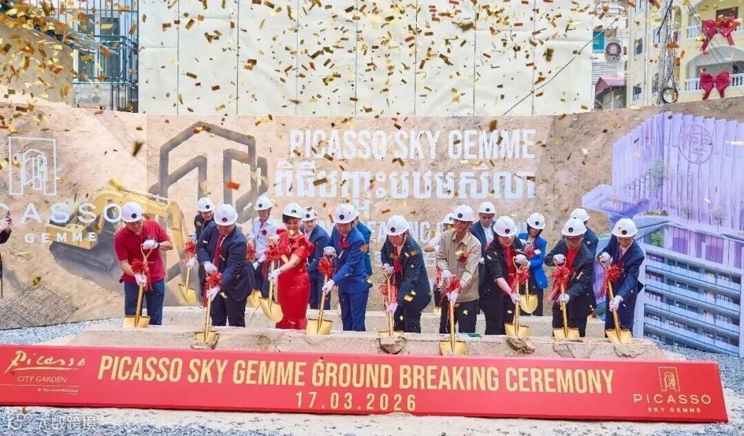 2026年3月17日上午,毕加索城市花园建设开发有限公司(PCG)在金边BKK1核心区举行PICASSO SKY GEMME——52层高端公寓项目动土仪式。该项目规划高度约180米,总计276席住宅单位,定位低密度、高私密性艺术地标级产品。
