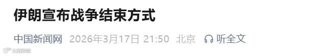 央视新闻消息,伊朗外长阿拉格齐3月16日在德黑兰举行新闻发布会。他明确表示,伊朗目前没有发出任何停火信号或要求停火,但这场战争必须以确保“侵略”不再发生的方式终结。