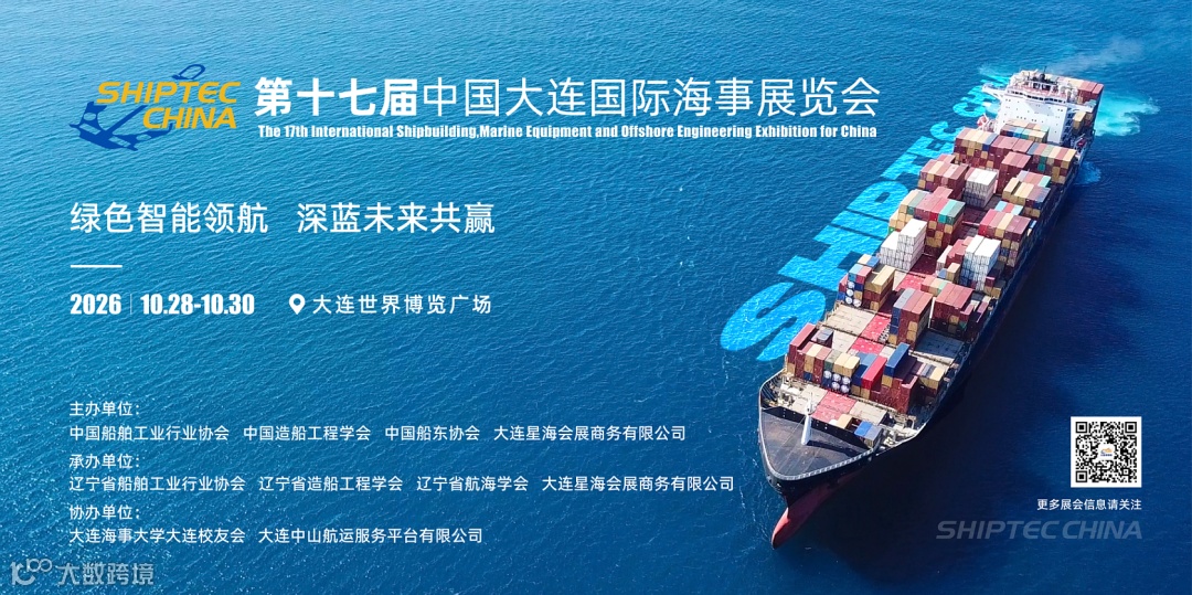 第十七届中国大连国际海事展览会,将于2026年10月28–30日在大连世界博览广场举办。大连国际海事展自1992年创办,经过30多年的创新发展,已成为全球最重要、最具影响力的海事盛会之一,为国际海事界搭建了全方位、多层次交流与合作的桥梁和纽带,获评“中国最具成长性品牌展会”“辽宁省金质品牌展会”“2024年度中国品牌展览会金奖”等荣誉。