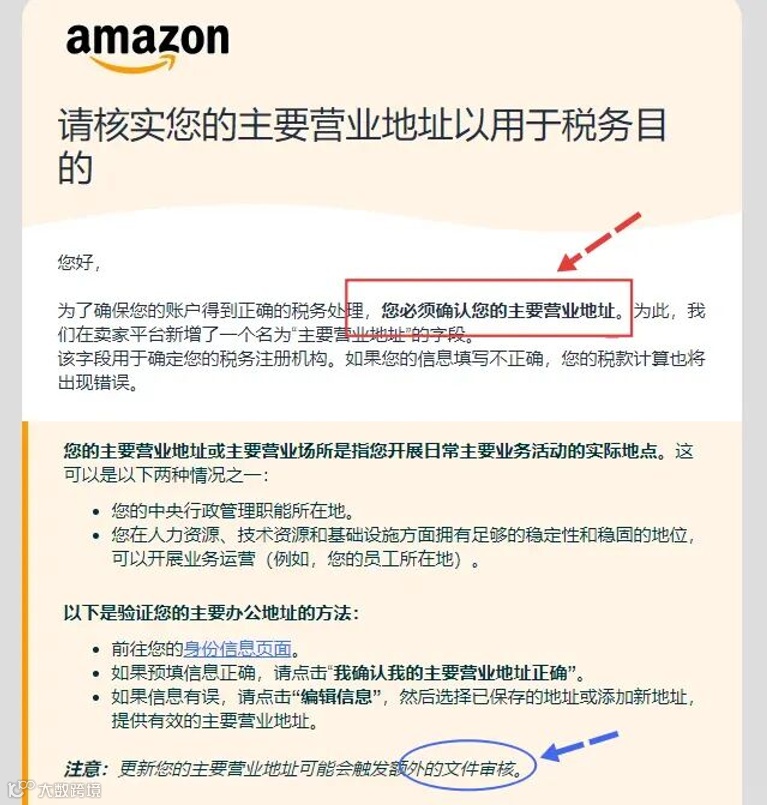 亚马逊在通知中给出了清晰的界定:主要营业地址,是指您开展核心日常业务活动的实际物理场所。