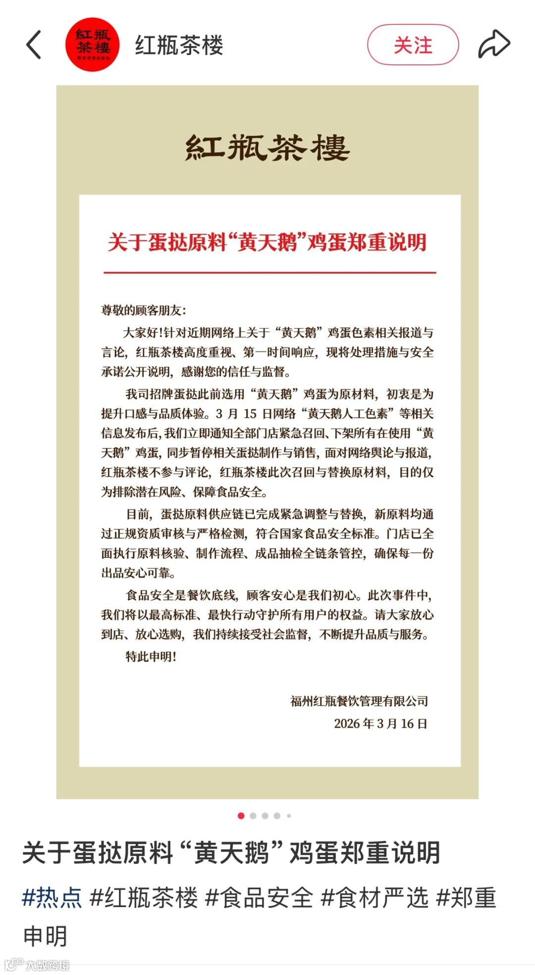 与此同时,受舆论风波影响,部分合作商为规避潜在风险,也暂时停止了黄天鹅鸡蛋的供应。