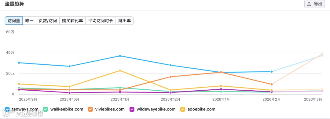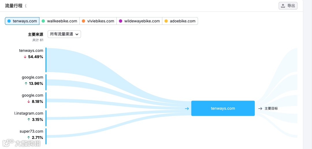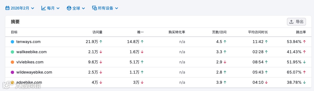之前调研过流量大的ebike网站,今天我用工具分析了这些网站的流量构成。