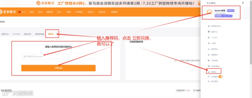 所有注册了卖家精灵账号的免费会员均可使用推荐码