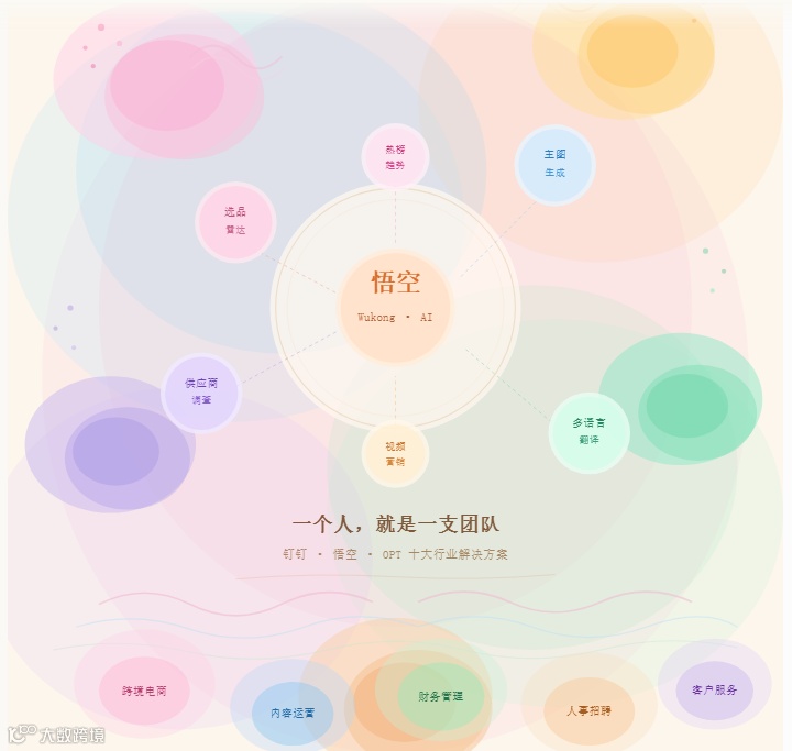 悟空发布了十大“一人团队”(OPT)行业解决方案,第二个就是一人跨境电商。