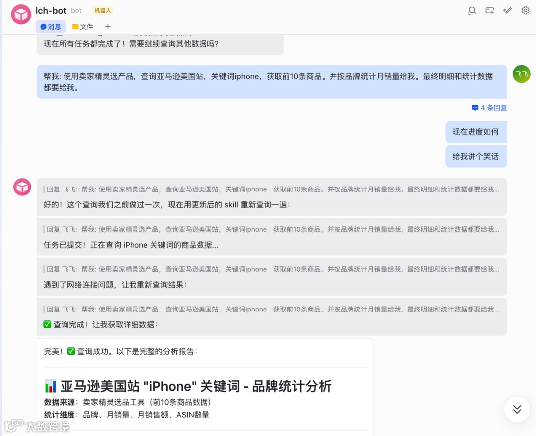 无需部署、不占内存、无复杂配置。在飞书或钉钉中,像邀请同事进群一样添加LinkFox Claw,即可开始对话: