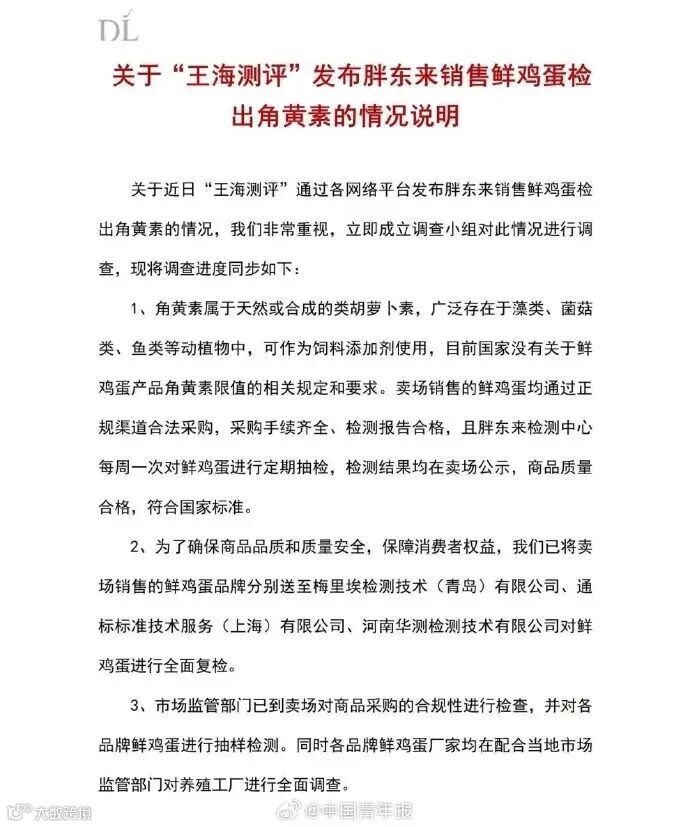 胖东来鸡蛋“角黄素争议”事件始末