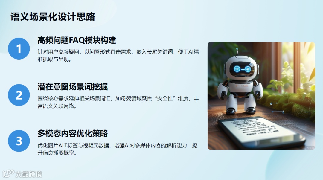 – 多模态优化:规范图片ALT文本、视频元数据,提升非文本内容AI可识别度;