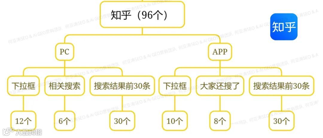 覆盖搜索结果页全部96个关键位置,包括下拉框、相关搜索、“大家还搜了”、搜索结果列表等。