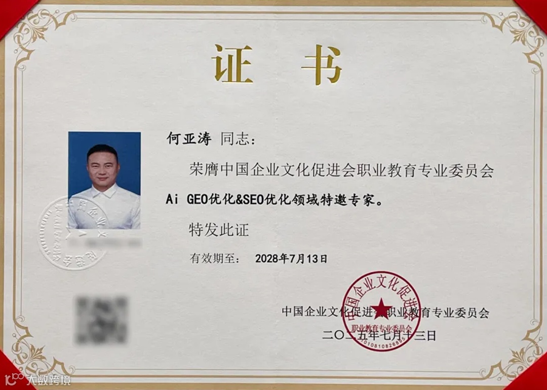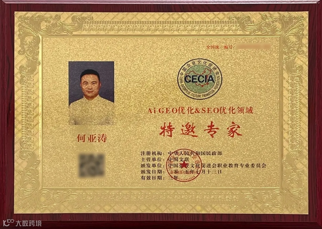- 中国企业文化促进会AIGEO优化&SEO优化领域特邀专家